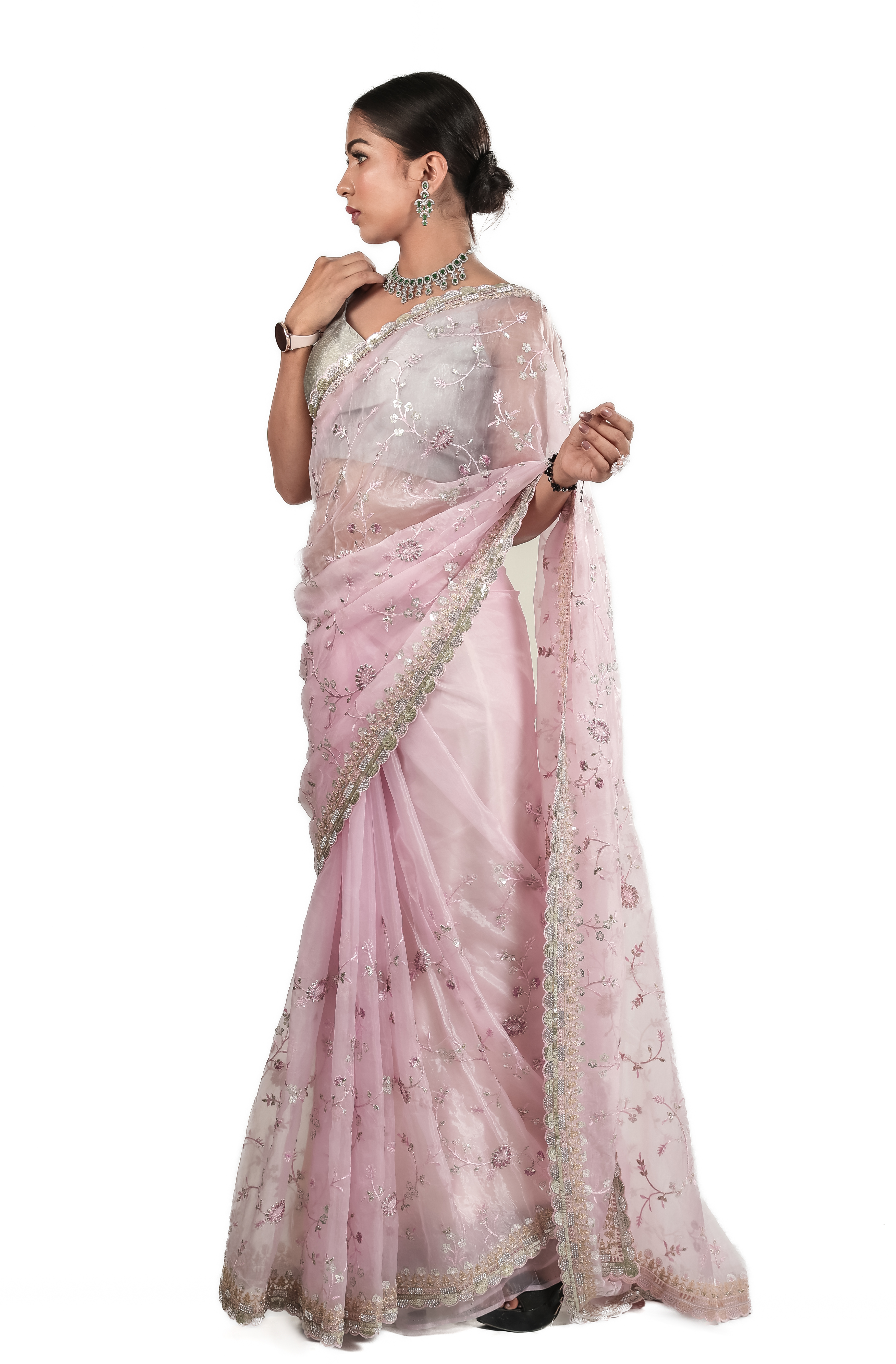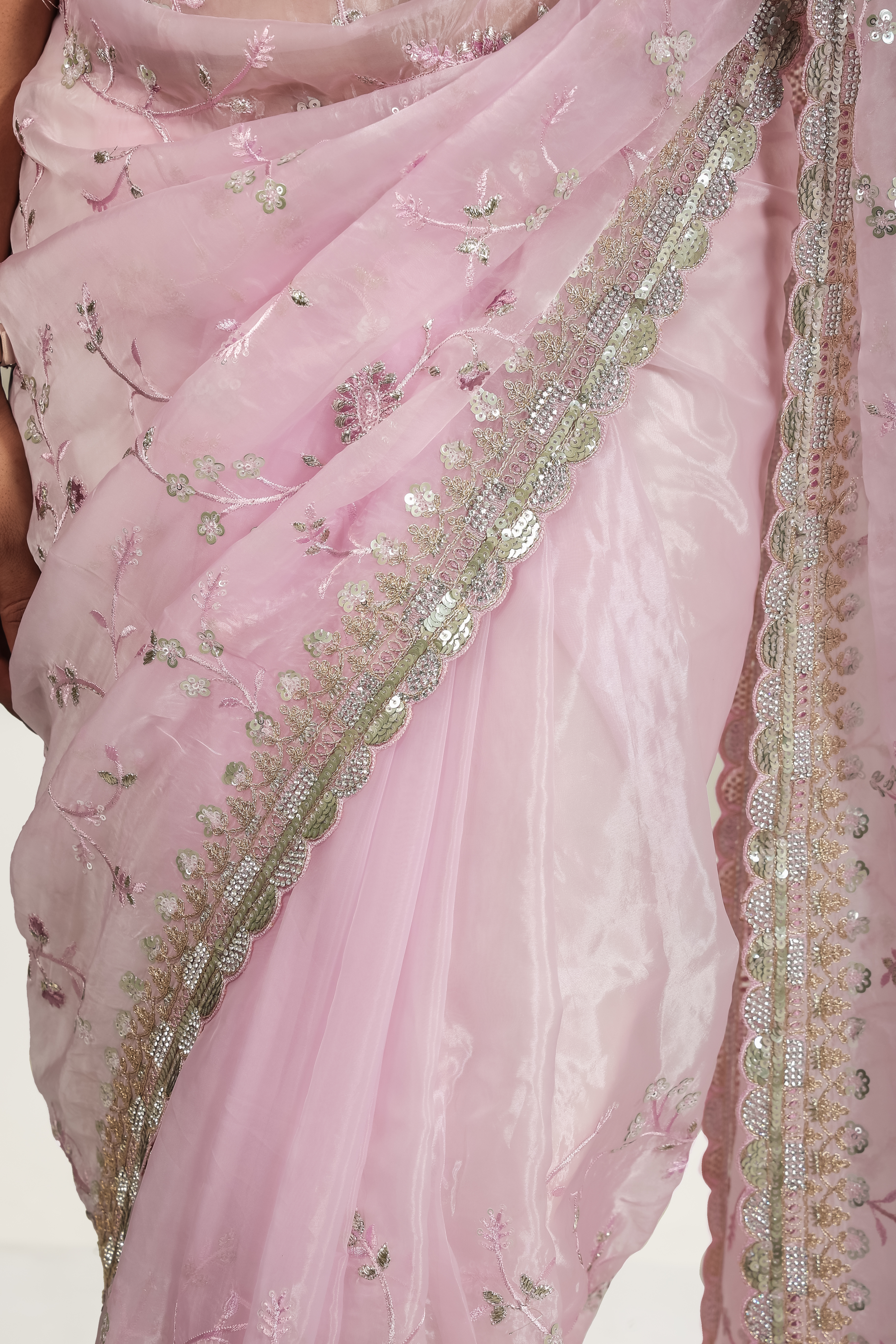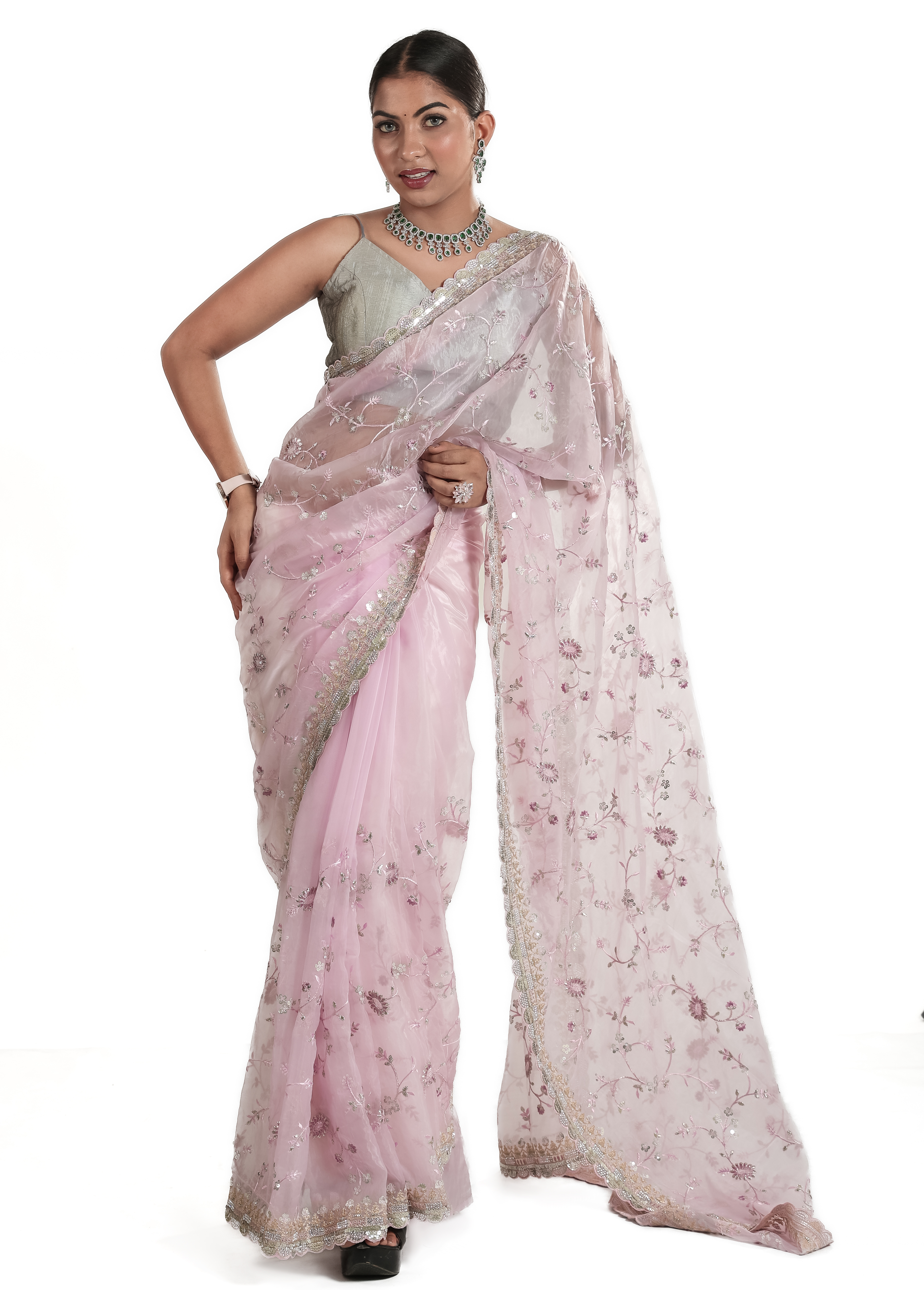 Add timeless elegance to your wardrobe with this Light Pink Designer Net Saree, beautifully crafted with delicate thread embroidery, sequins work, and shimmering floral motifs. The soft net fabric drapes gracefully, offering a luxurious, lightweight feel perfect for weddings, receptions, parties, festive events, and engagement ceremonies. Its intricately embroidered border adds a touch of glamour, making it an ideal choice for women who love subtle yet sophisticated ethnic fashion. This pastel pink saree pairs beautifully with silver or diamond jewelry, creating a dreamy, graceful look. Perfect for bridesmaids and special occasions, this saree enhances your style with its modern charm and traditional detailing. A must-have addition to your designer saree collection.