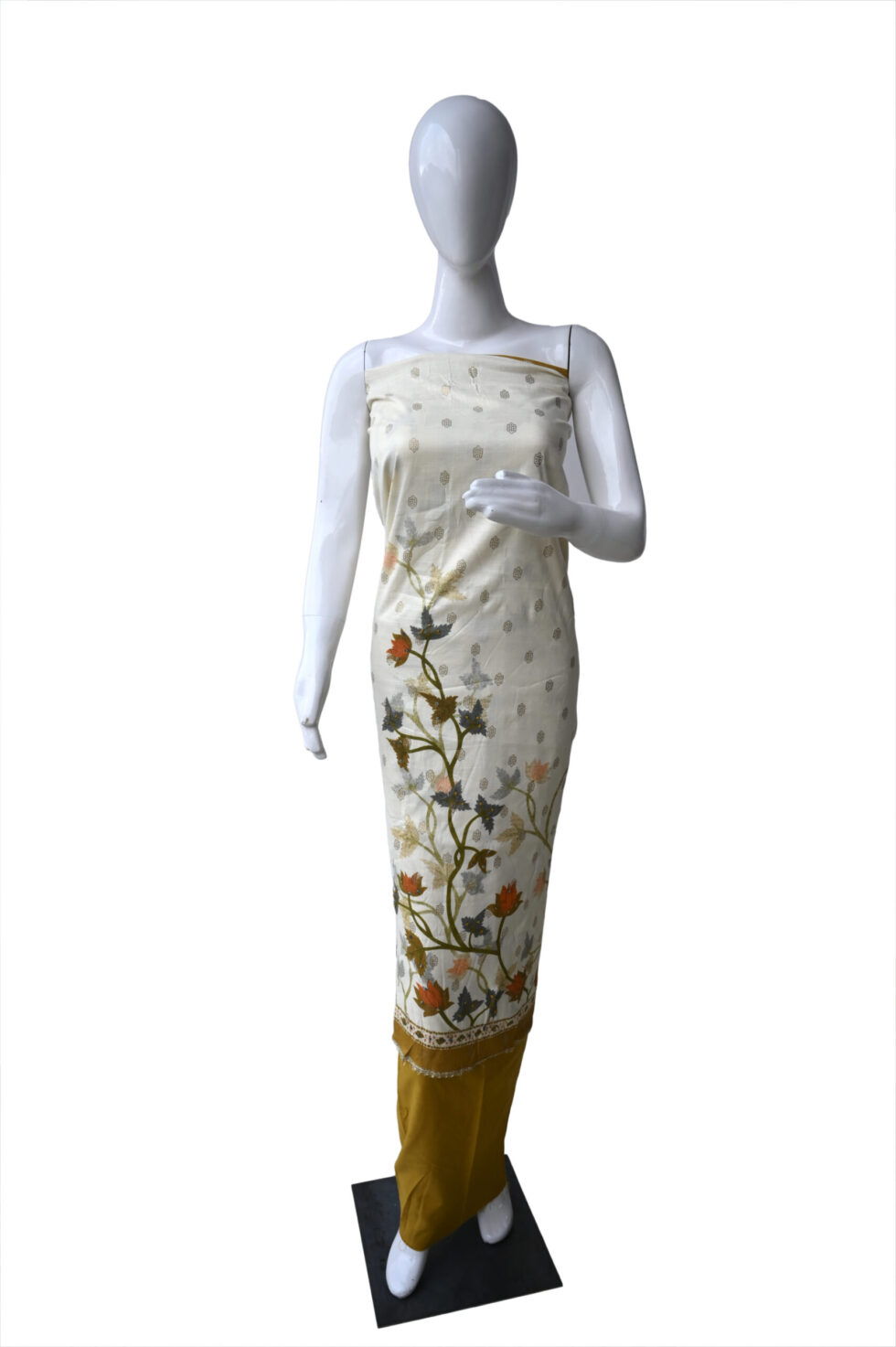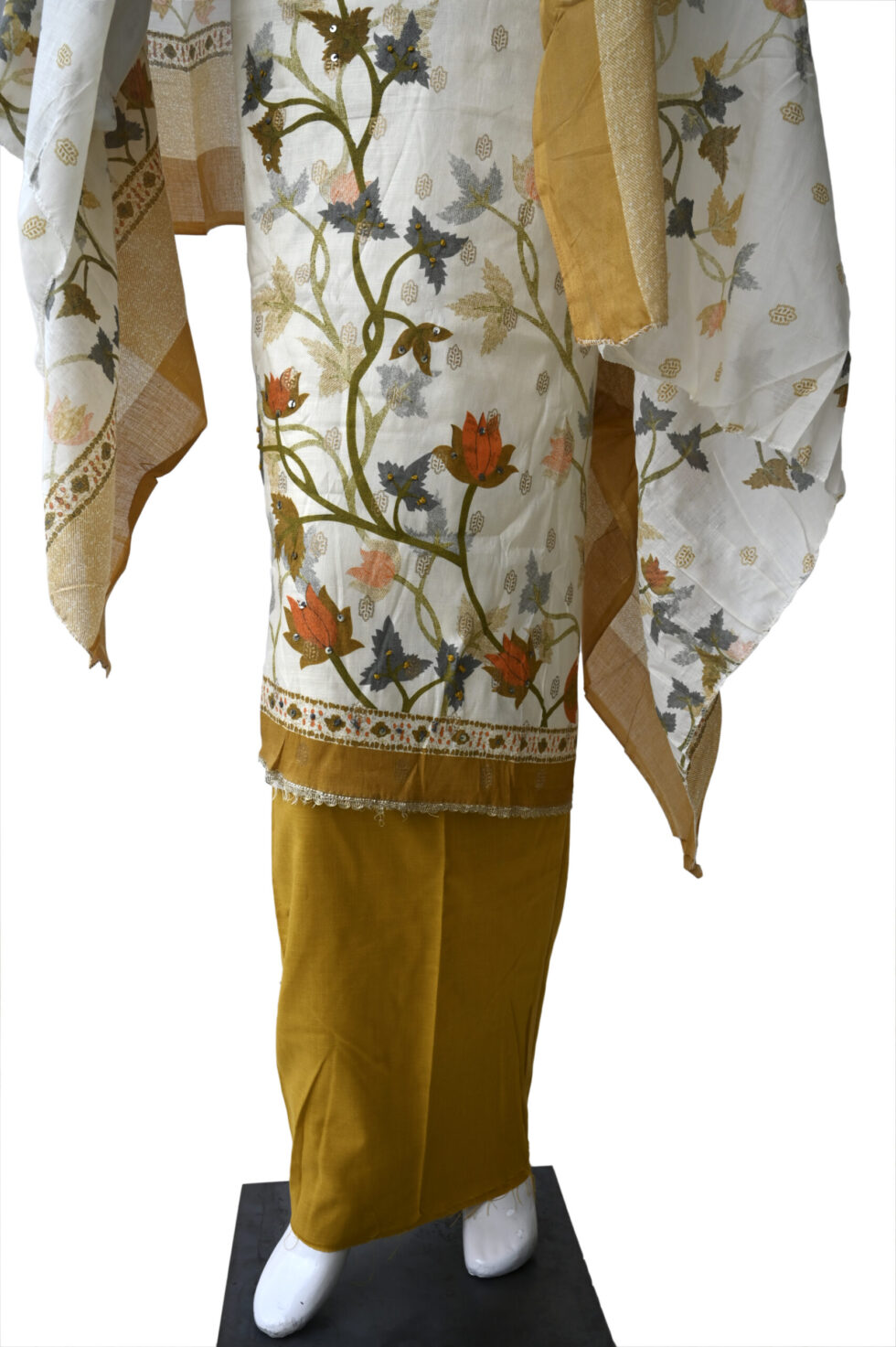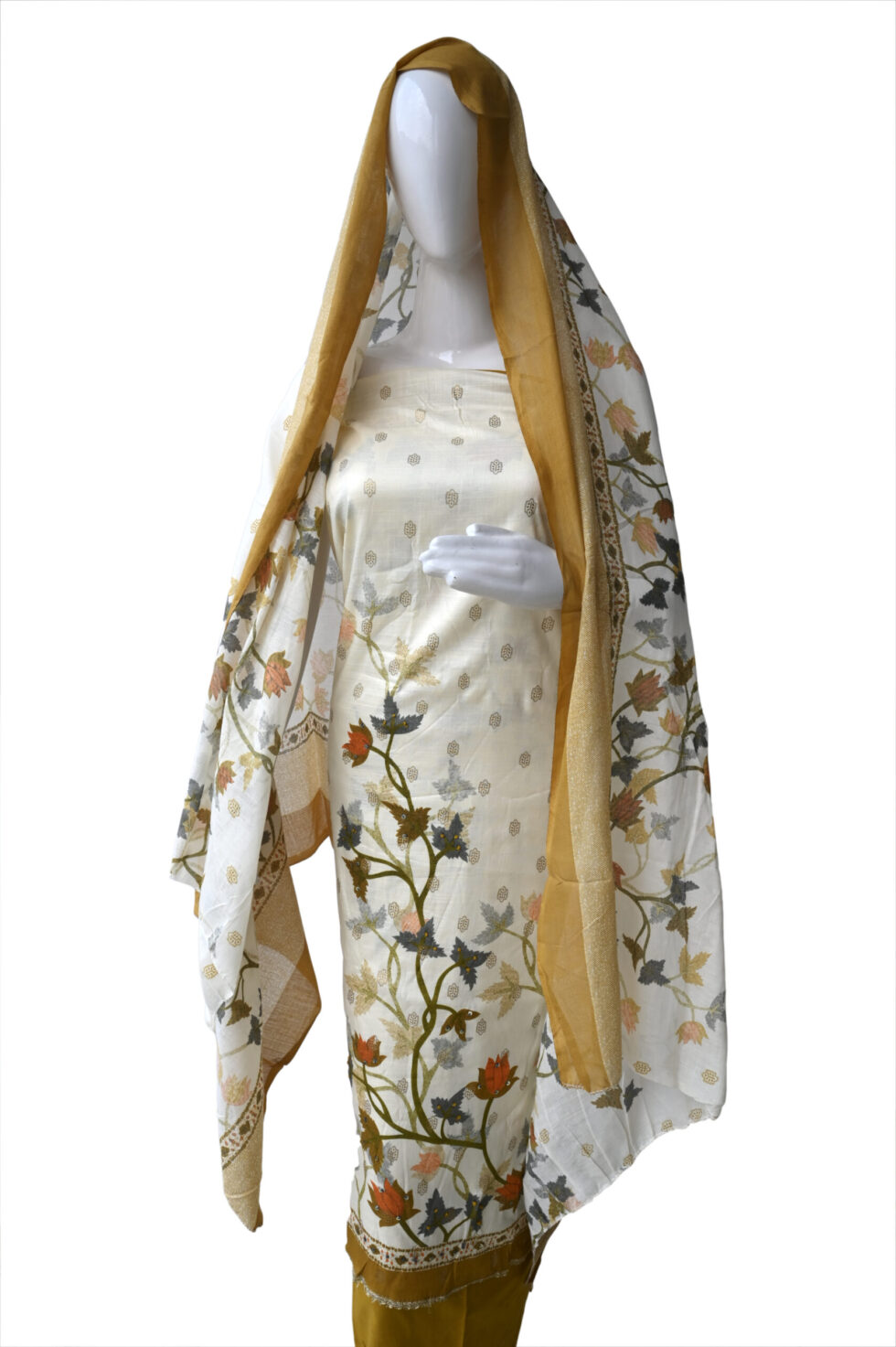 Be the first to review “Peach and Terracotta Floral Print Unstitched Cotton Dress Material Suit Set”