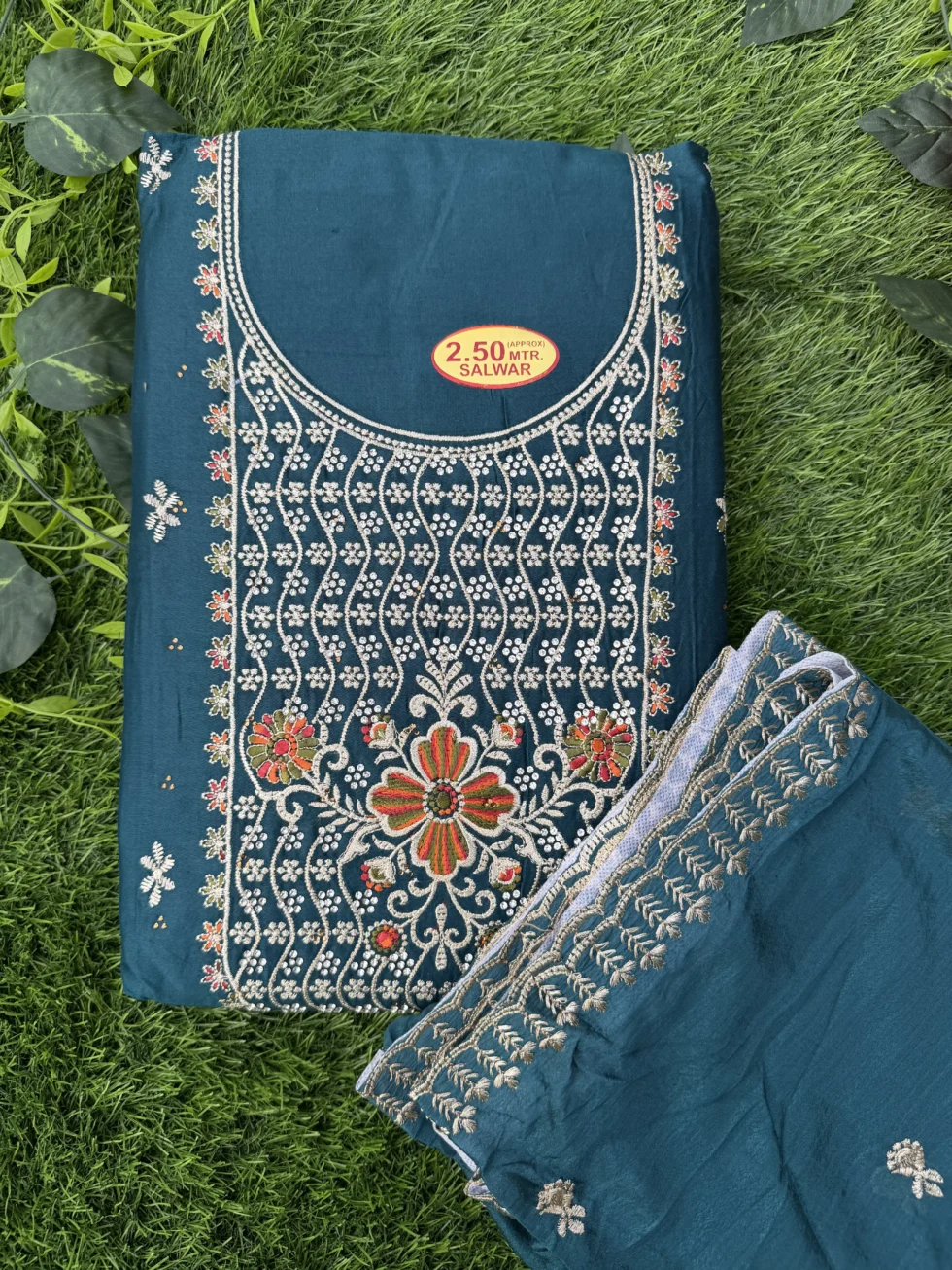 This unstitched salwar suit set comes with fabric for the top, bottom, and a matching dupatta, allowing you to customize the stitching according to your preferred style and perfect fit.