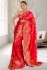 Red Banarasi Silk Saree with Blouse – Traditional Zari Woven Festive Wear Saree