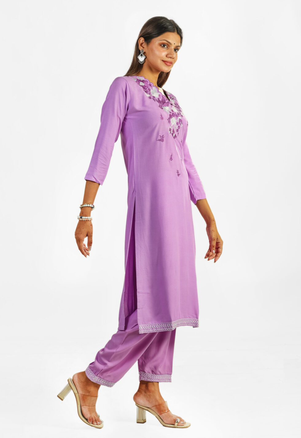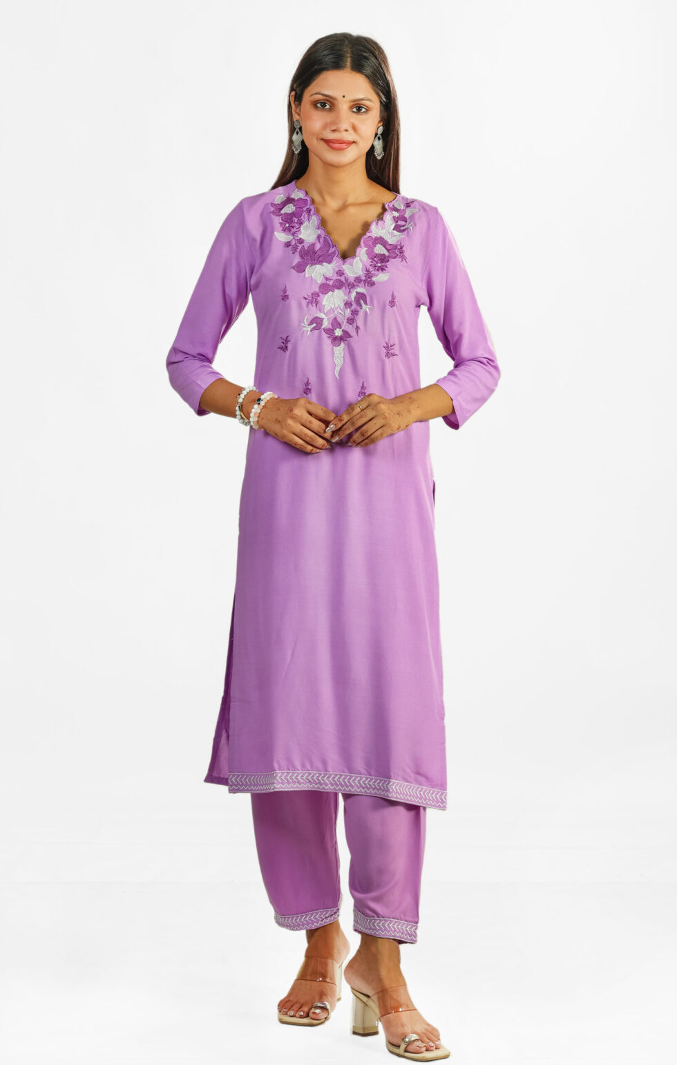 Be the first to review “Simple Lavender Embroidered Kurta Set”
