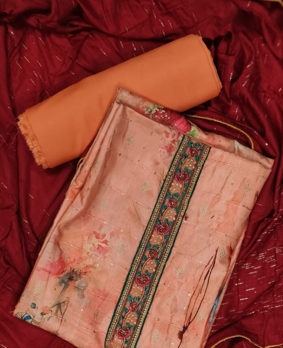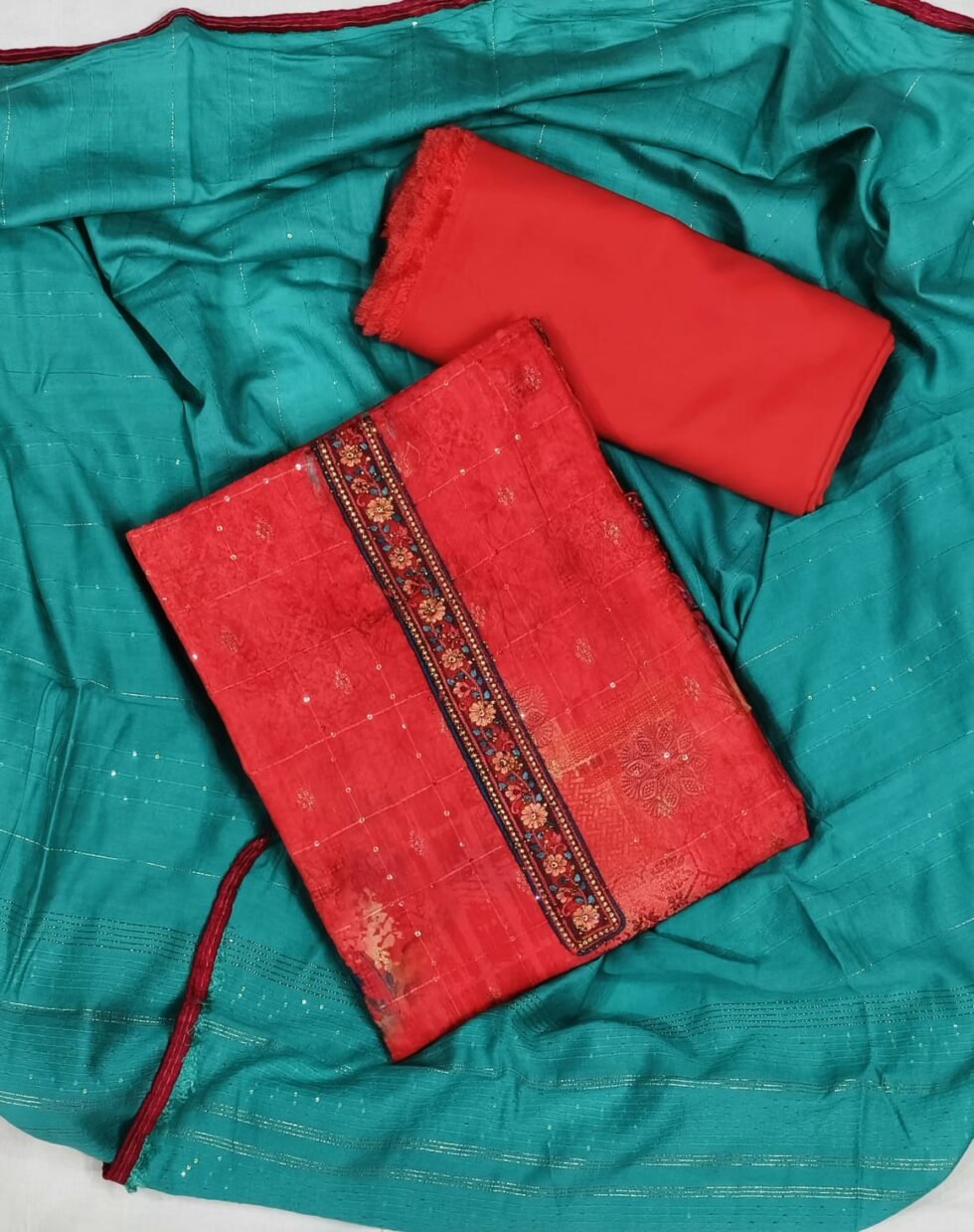Be the first to review “Striking Red and Turquoise Embroidered Unstitched Suit Set”