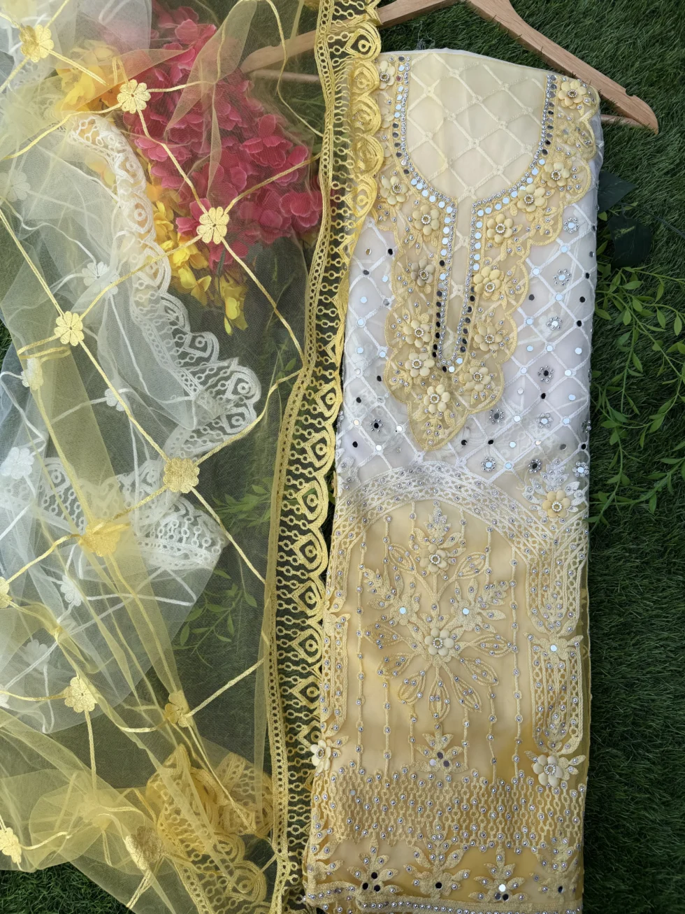 Includes: Net Top, Inner Fabric, Bottom Fabric & Net Dupatta
